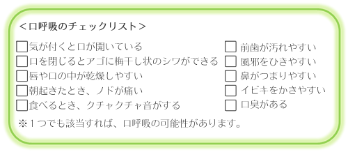 「口呼吸」習慣者が増えているそうです。また、普段鼻づまりがなくても風邪や喫煙、歌唱、吹奏楽、激しいスポーツ、よく喋らなくてはならない職業も無意識のうちに口呼吸の癖がつくきっかけになるといわれています。