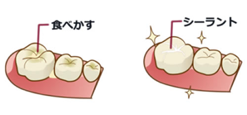 虫歯になりやすい溝を事前に埋めてその部分の虫歯の発生を防ぐ方法です。